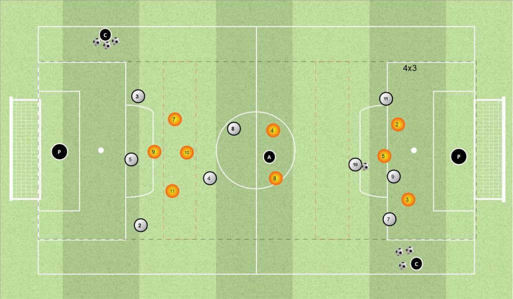 - Gioco di Occupazione 3 squadre “Mobilità interna, Occupazione razionale degli spazi e Cambio gioco.”