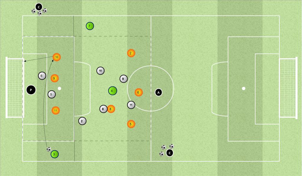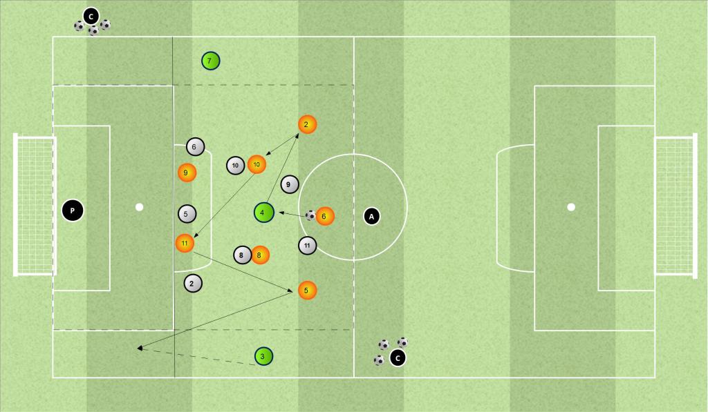 Se vogliamo lavorare soprattutto su costruzione e sviluppo offensivo, è meglio lasciarli liberi (magari con vincolo a 2 tocchi) così da facilitare la circolazione palla e lo sfruttamento dell’ampiezza.