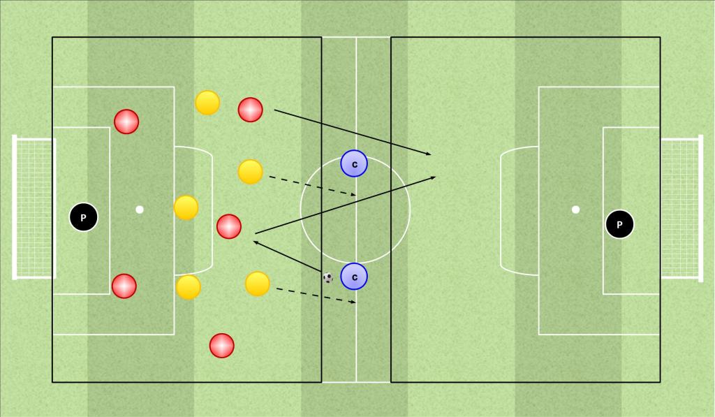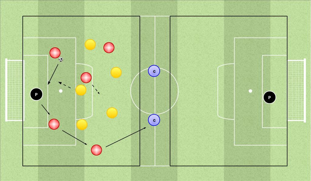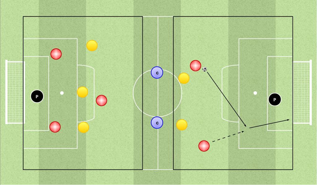 Allenare la ricerca del terzo e quarto uomo in contesto di gioco reale, in spazio ridotto, sviluppando movimenti senza palla, tempi di smarcamento in profondità e capacità di superare una linea avversaria attraverso combinazioni corte + corsa in avanti, mantenendo continuità, intensità e letture situazionali.