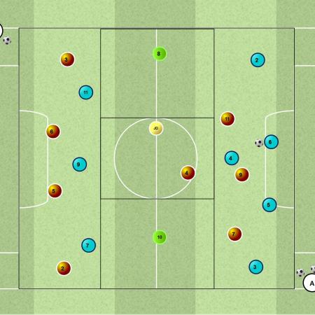1-4-3-3 Attacco vs Difesa 4×5+2 FA (Inserimento della mezzala in zona di finalizzazione avanzata)